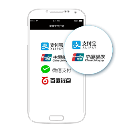 炫美高科,为iOS/Android原生/H5 App提供支付解决方案:支持微信支付、支付宝支付、银联手机支付、百度钱包等。
